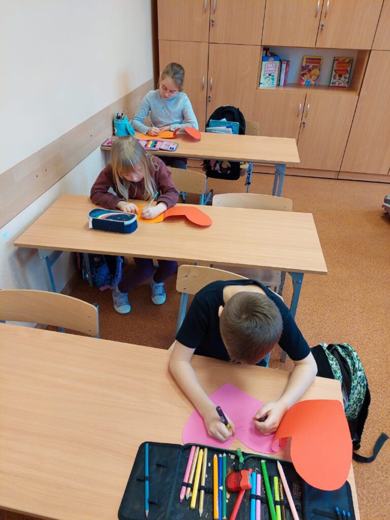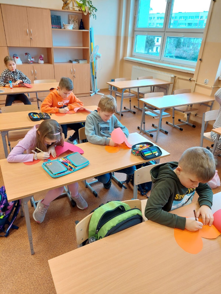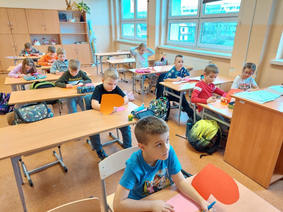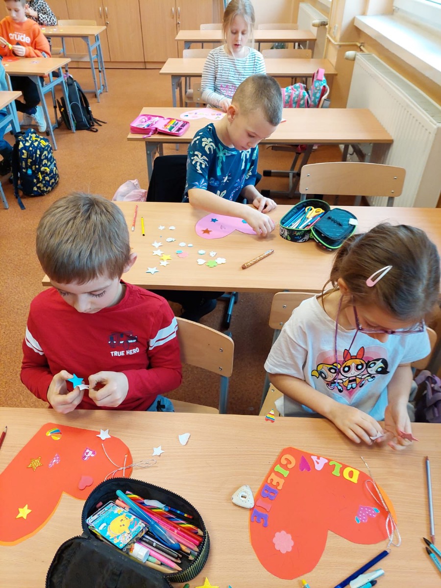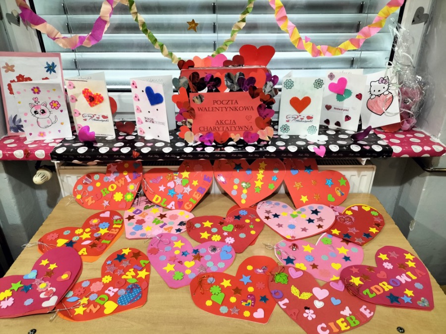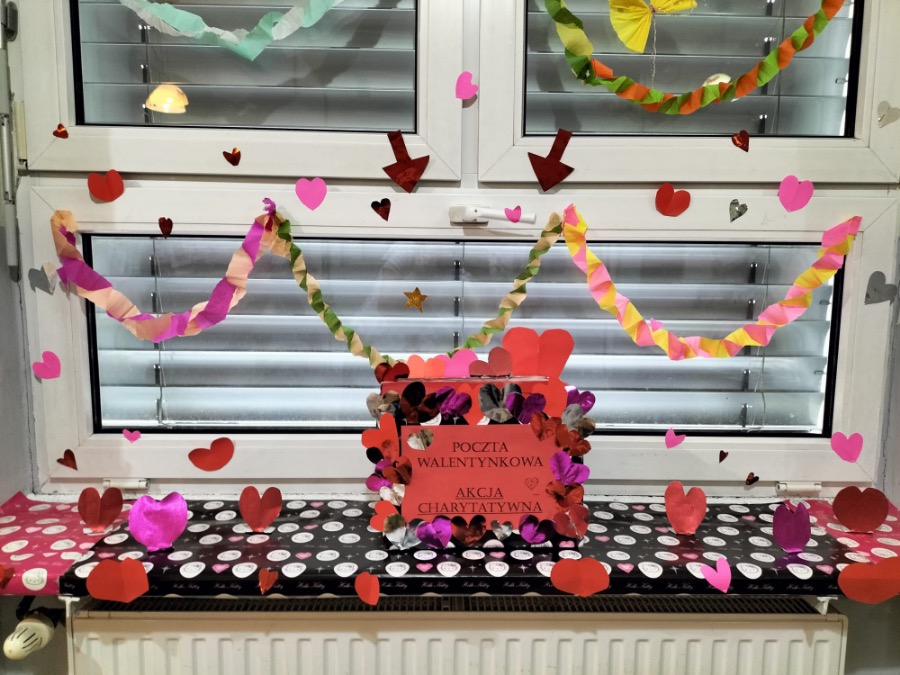 Do akcji szczególnie chętnie włączyły się nasze Świetliczaki, które wraz z opiekunami przygotowały piękną dekorację i skrzynkę walentynkową. Ogromny udział w akcji mieli też uczniowie klasy 1g. Zainspirowani przez wychowawczynię, panią Eweliną Gałkowską, stworzyli piękne czerwone serca.