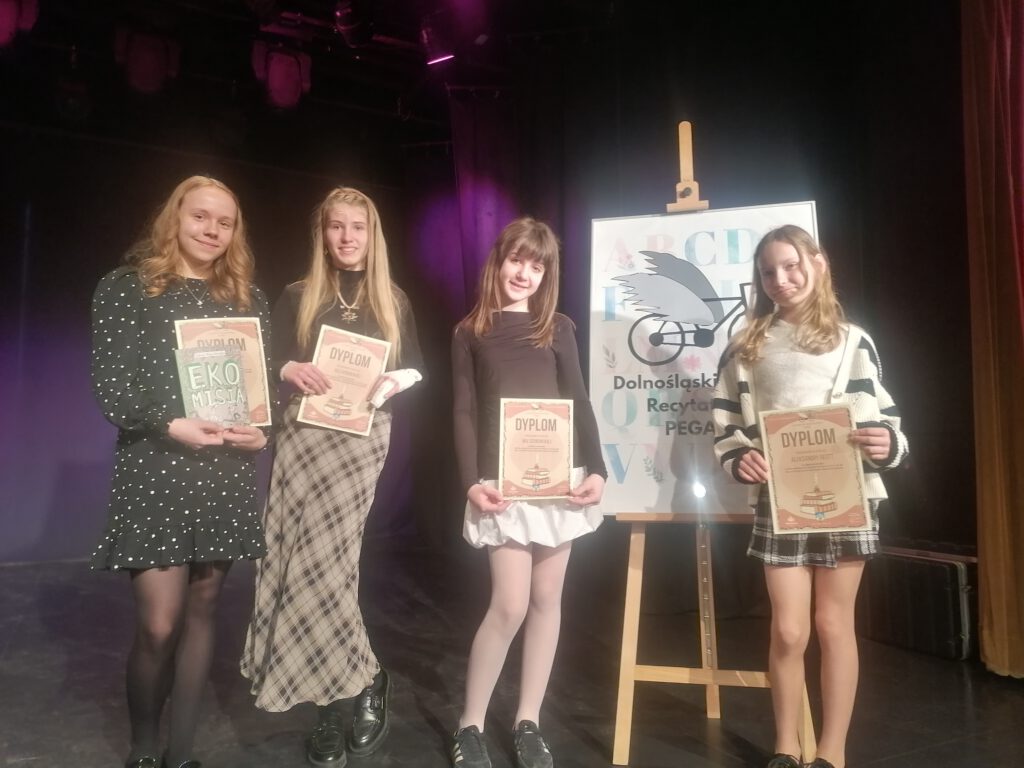 We wtorek 24 marca odbył się Miejski Konkurs Recytatorski klas IV – VI. Wzięła w nim udział 4-osobowa reprezentacja laureatek Szkolnego Konkursu Recytatorskiego: Maja Sosnowska (4F), Aleksandra Reutt (4E), Emilia Baranowska (6A), Julia Nowińska (6A)