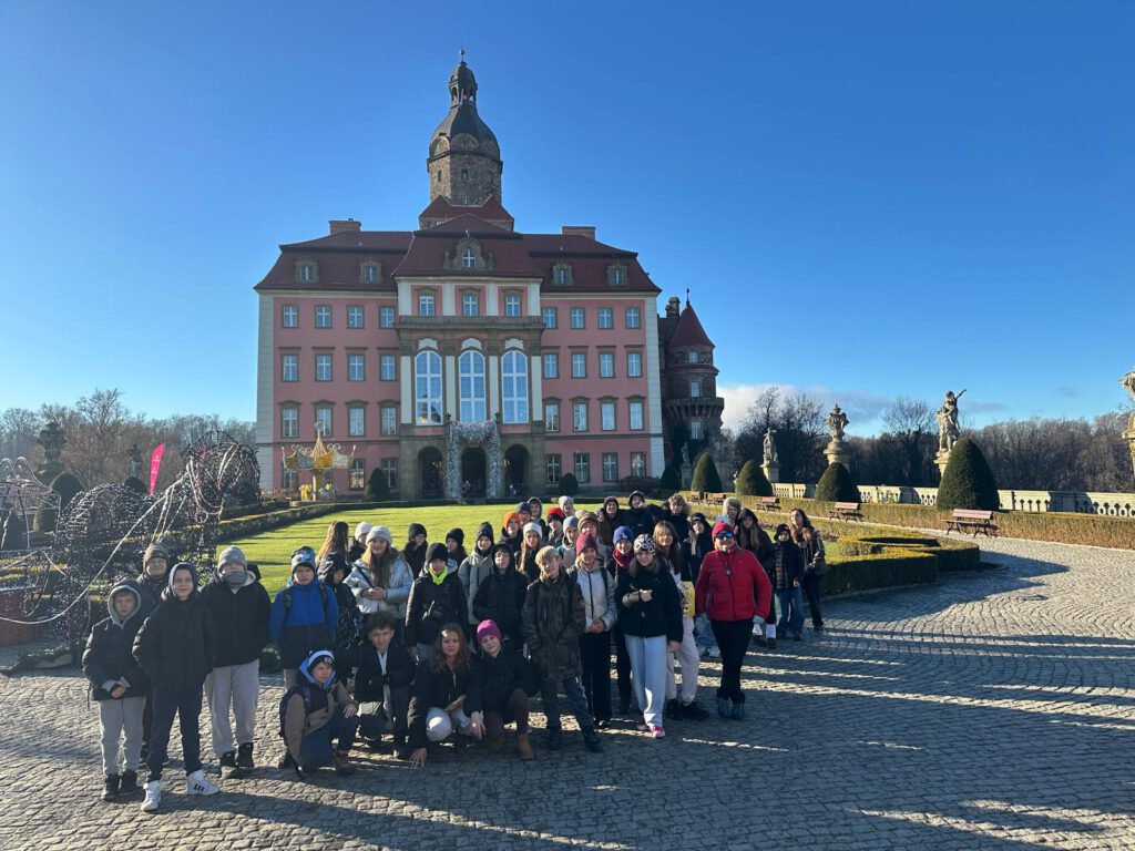 W dniu 19.12.2025r. uczniowie z klasy 5a oraz 6c wzięli udział w wycieczce edukacyjnej do Wałbrzycha sfinansowanej z przedsięwzięcia Ministerstwa Edukacji „Wyjście z klasą. Program był niezwykle bogaty i pozwolił połączyć kulturę z aktywnym wypoczynkiem.